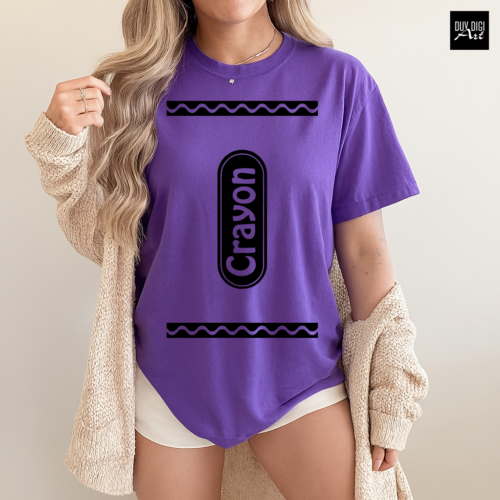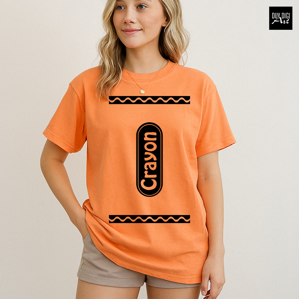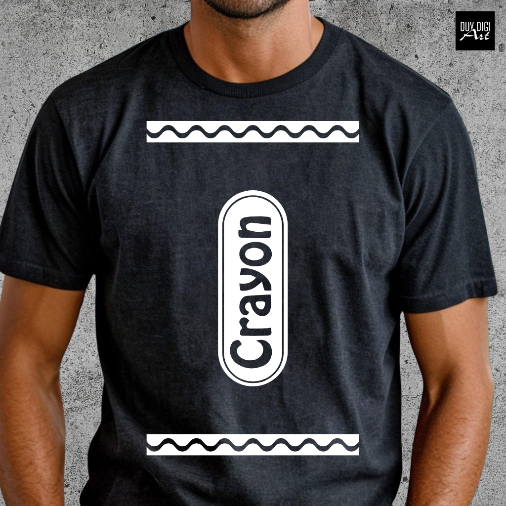 Turn heads with this playful and nostalgic crayon-inspired T-shirt design! Styled to mimic the classic crayon wrapper, this vector SVG features: